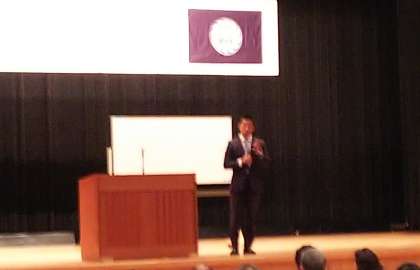 演題は「一流の習慣術 イチロー・田中将大を通じて」というテーマで、NPO法人ベベースボールスピリッツ理事長の奥村幸治氏が講演をされました。