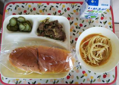 牛肉のカレー風味焼き トマトのスープスパゲッティ