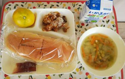 みかん パン(コッペパン) イチゴジャム 牛乳