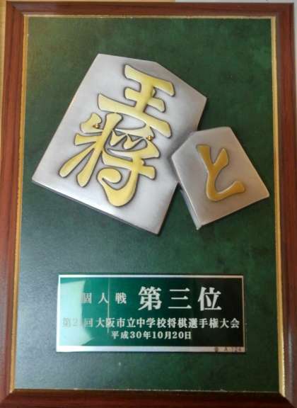 20日に、大阪市立文の里中学校で、第21回大阪市立中学校将棋選手権大会が開催され本校将棋部の生徒が参加しました。