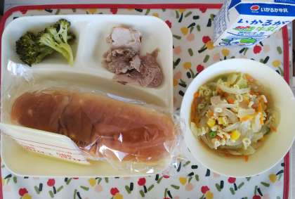 豚肉のガーリック焼き マカロニと野菜のスープ