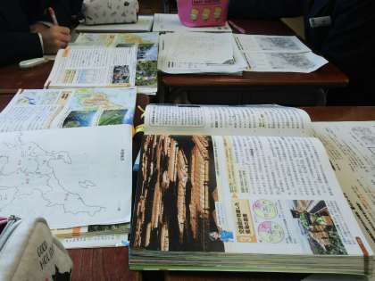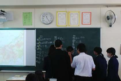 8日に行った、2組の社会科の授業です。地理的分野「日本の諸地域」で中部地方の自然環境について学習しました。