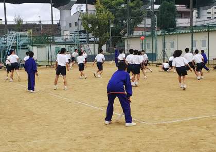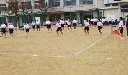 1年生は、14日の午後運動場で球技大会を行いました。各クラス男女別にリーグ戦でドッジボールを行いました。