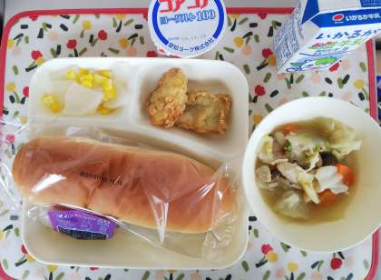 フリッターとは、食材に泡立てた卵白(メレンゲ)と小麦粉などでつくった衣をつけ、油で「洋風の揚げ物」のことをいいます。給食のフリッターには、卵を使っていません。