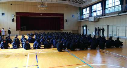 30日の期末テスト終了後、体育館で部活動集会を行いました。