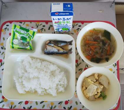 高野どうふの卵とじ まっ茶大豆 ごはん 牛乳