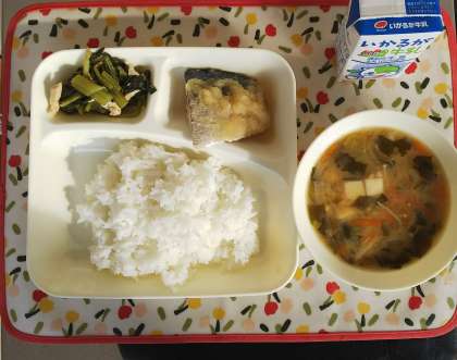 さばのみぞれかけ みそ汁 こまつなの煮びたし