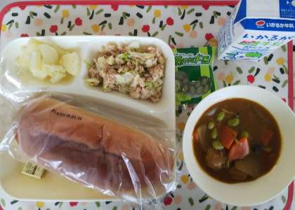 ミートボールと野菜のカレー煮 ツナとキャベツのソテー