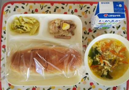 キャベツのオイスターソースいため パン(おさつパン) 牛乳
