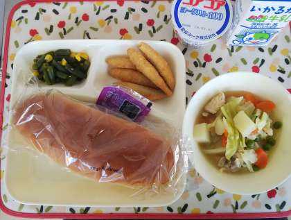 わかさぎフライ スープ煮 三度豆とコーンの甘酢あえ