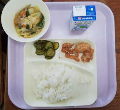 きゅうりの中華あえ はっ酵乳 ごはん 牛乳