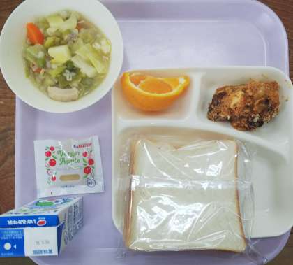 とうふのミートグラタン 押し麦と野菜のスープ煮