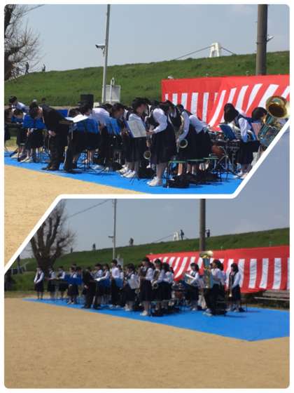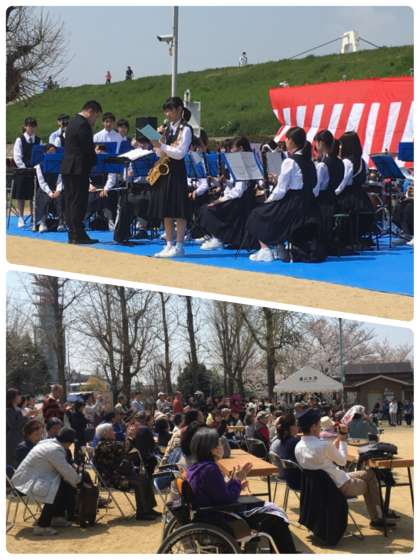 本日は、太子橋さくらまつりで吹奏楽部が演奏を行いました。