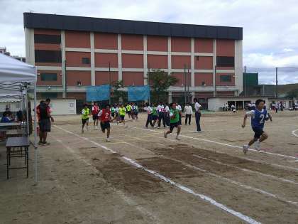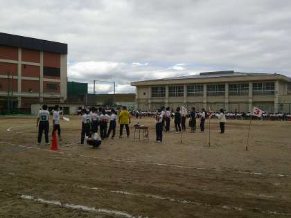 天気も曇り空でそれほど暑さもなく運動会予行がおこなわれています。招集・誘導、各係りの動きの確認をします。縦割りのリレー種目は走者の確認のため実際に走ります。本番さながらの盛り上がりでした。