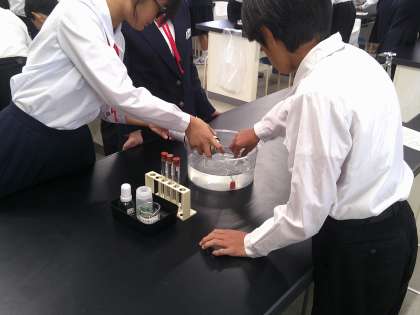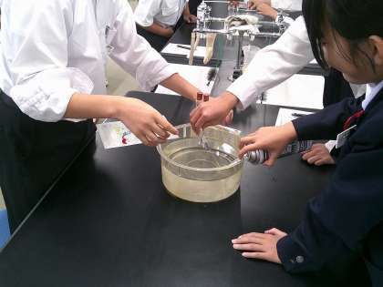 4時間目の理科の授業です。『酸素』『二酸化炭素』『水素』の気体の性質を学んだ上で、それぞれの方法で気体を集めます。