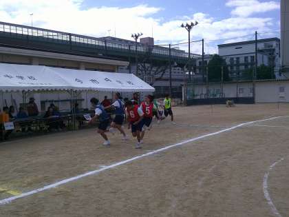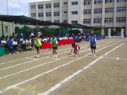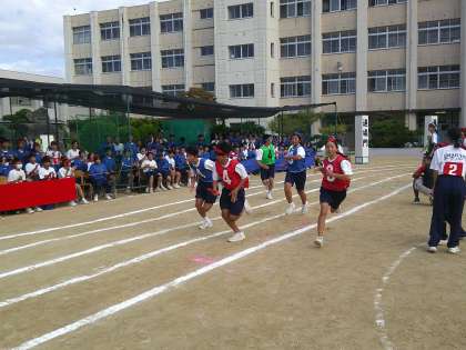 プログラム12番、縦割りリレーです。午前中最後の種目になります。各クラスの精鋭たちが、後輩から先輩へとバトンをつなぎます。学年を超えた真剣勝負が繰り広げられます。
