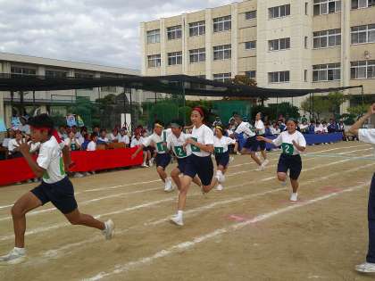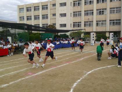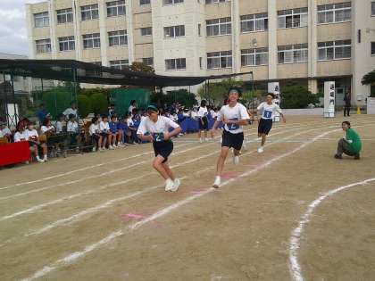 プログラム19番、男女混合リレーです。男子は1周、女子は半周走ります。