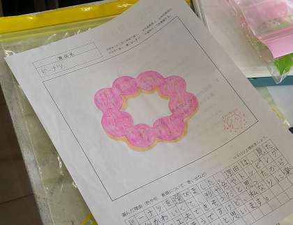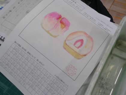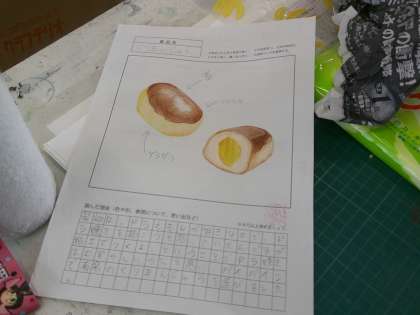 1時間目の美術の授業です。超軽量紙粘土と新聞紙を素材に使って食品サンプルを作ります。まずは形作りをして、色を塗っていきます。