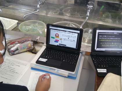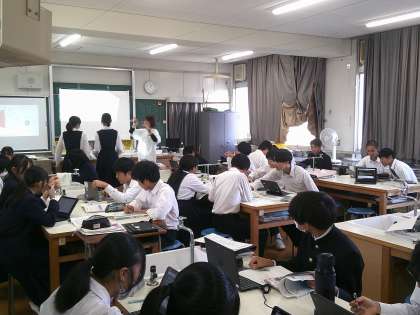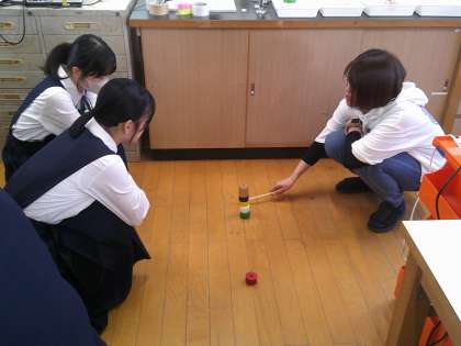 4時間目の理科の授業の様子です。だるま落としを題材に、慣性の法則について学びます。