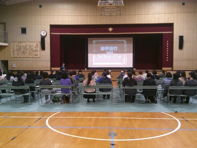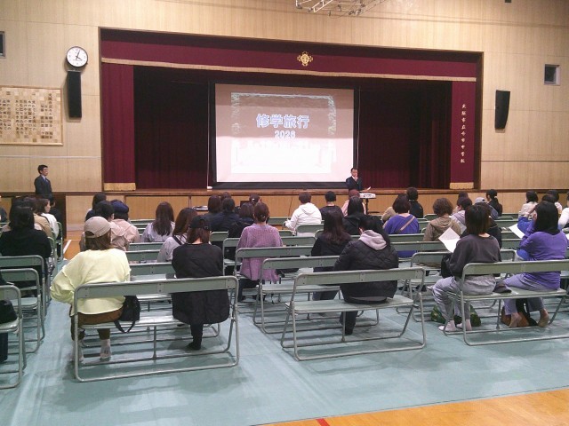 本日、本校体育館にて泊行事保護者説明会が行われました。