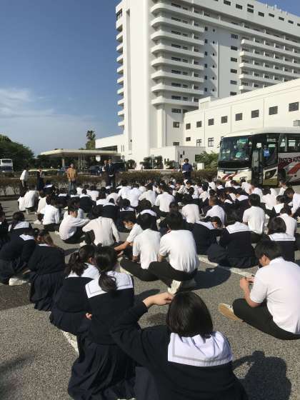 ホテルでの退館式。ほぼ予定通りの時刻で出発です。