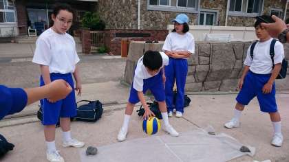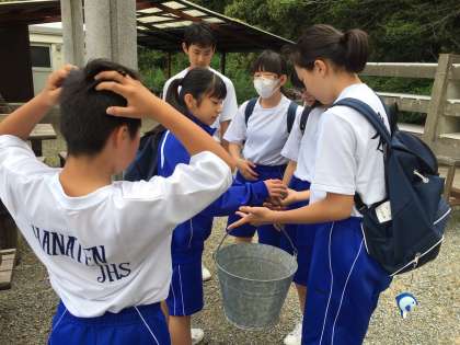自然の中で身体、頭を使って班で協力しながら得点を競うゲーム、ウォークラリーです。うまくできるかな。