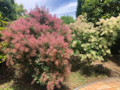 自然史博物館、長居植物園のまわりにはたくさんの珍しい植物があります。子どもたちも不思議そうに見ていたスモークツリー。