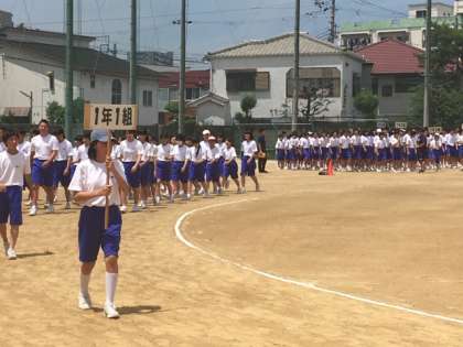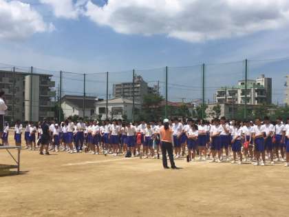 本日は今週金曜日に迫りました体育大会の全体練習です。3時間目〜6時間目の時間帯にリハーサルを行いました。