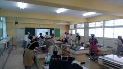 「授業でそのまま使える牛乳を使った実習と講話」というテーマで、中学校教育研究会2ブロック技術家庭部門家庭分野発表会が本校で行われました。