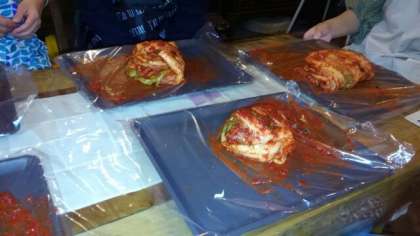 「班家食工房」において、白菜のキムチ作り体験に挑戦しました。