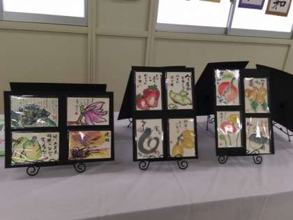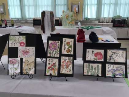 家庭科調理室にはPTAの方々の作品が展示されています。