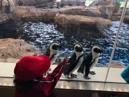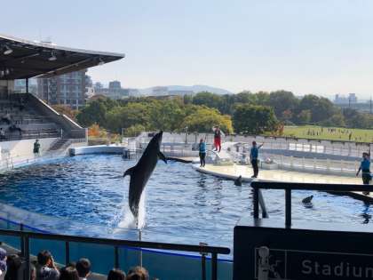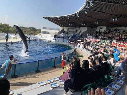 2年 校外学習 京都水族館に到着しました。イルカショーを見学中です。