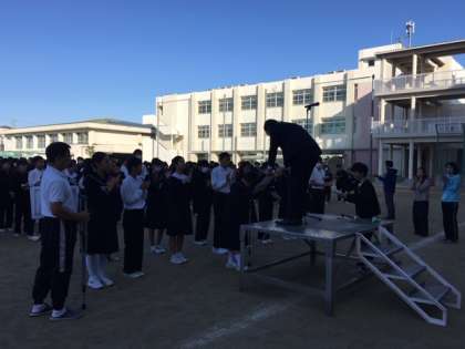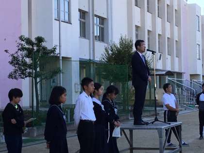 11月最初の全校集会では生徒会認証式が行われ、また多くの表彰がありました。