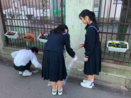 活動途中にふざけて叱られる人もいましたが、ほとんどの生徒がてきぱきと動き清掃に取り組んでいました。地域の方々が「ありがとうね」と声をかけてくださって、さらに頑張れたようです。