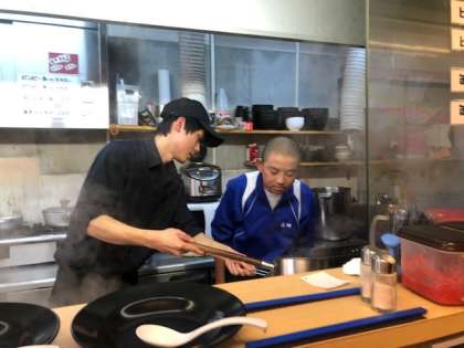 汗を流しながらラーメンを作る表情は、とても真剣でキラキラしていました。お店の方が一生懸命に教えて下さり、とても良い体験をさせていただいています。