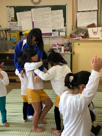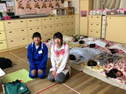 5歳児さんたちは「中学生のお姉ちゃん」と遊びたくて集まってきていました。