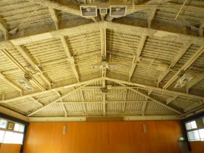 夏休みに行われた体育館に続いて格技室の天井落下の防止のための工事です。