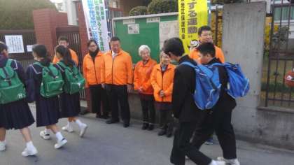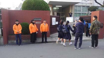 冬休み前に、本校正門で登校して来る生徒たちに、