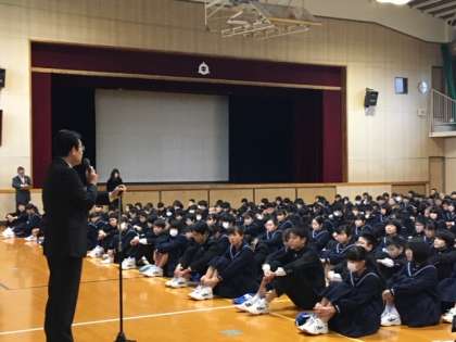 校長先生のお話から:お節料理を囲んだり、久しぶりに親戚に会ったり、みなさんそれぞれのお正月を過ごしたことでしょう。今日から3学期。3年生は明日第5回実力テスト、1,2年生は9日にチャレンジテスト。気持ちを切り替えてしっかり取り組んでください。あっという間の3学期ですから、今のうちに丁寧に計画を立てて、実行しましょう。学習面だけでなく、部活動や生活面においても「必ずこれだけは」という目標を持ちましょう。