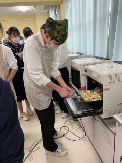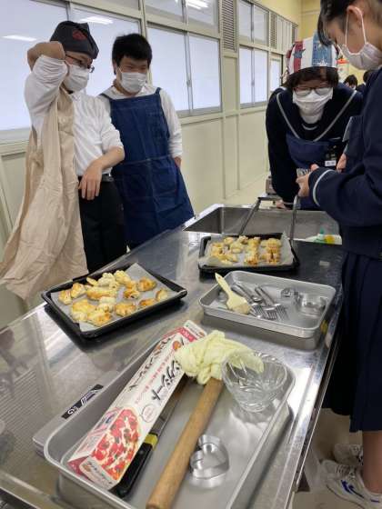 今週三年生は家庭科の調理実習でチョコパイを作っています。