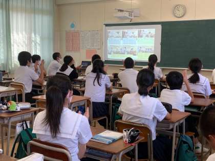 9月1日(火)朝、各教室にて放送での全校集会。先日の部活動表彰の様子を各教室でスライドで見ることができました。画面には各部の表彰の様子が映し出されています。