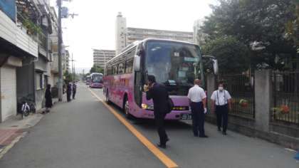 3年生修学旅行 バス出発