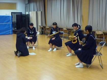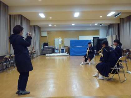 放課後に、新聞社が今月21日に東京で行われる全国アンサンブルコンテスト出場の4名の生徒に取材に来られました。全国大会での実力発揮を願っています。