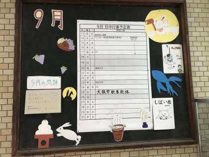 お月様やお団子など、「9月の掲示板」を意識しながら作成しました。