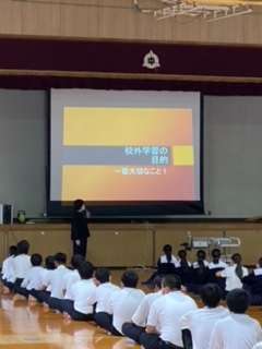 2年生は、11月5日に、校外学習として大阪市内ウォークラリーにいきます。今日より、取り組みスタート5時間目は、学年集会の形で説明を聞き、6時間目は、各クラス班で話し合いました。