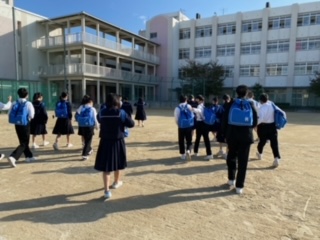 大阪市内フィールドワークで12か所の施設の中から3か所以上選んで班単位で回ります。よく知る施設でも、しっかり準備をして学級の班で見学すると、まったく違う体験ができるでしょう。今日はお天気が良さそうです。気をつけて行ってください。