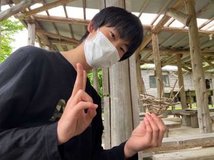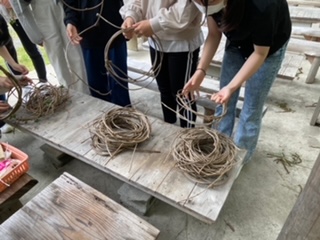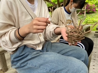 3年生修学旅行 選択別体験学習 つる細工作り体験の様子です。みんな真剣に取り組んでました。