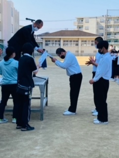 2週間から3週間、様々な活動を通して、教育現場の実際を一つでも多く学んでほしいと思います。柔道部の表彰状伝達も行われました。