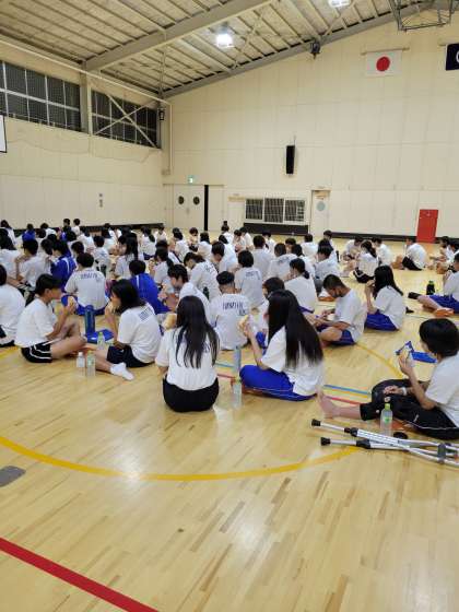 昨日、21時15分ごろの補食タイムの様子です。1日の疲れをとっています。メロンパンを美味しそうに食べています。