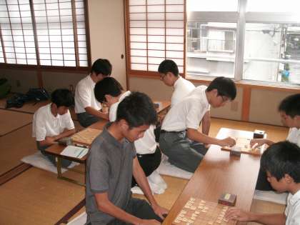 2015年7月29日(水)午前中に放出中学校の和室にて、旭東中との交流戦を行いました。将棋、囲碁ともに90分ずつ各6名ずつの総当たりで行い張り詰めた雰囲気の中、日ごろの練習の成果を発揮して、お互いに交流を深め合いました。10月10日(土)の大阪市将棋大会に向けて今後もより高いレベルでの対局を目指して取り組んでいきます。